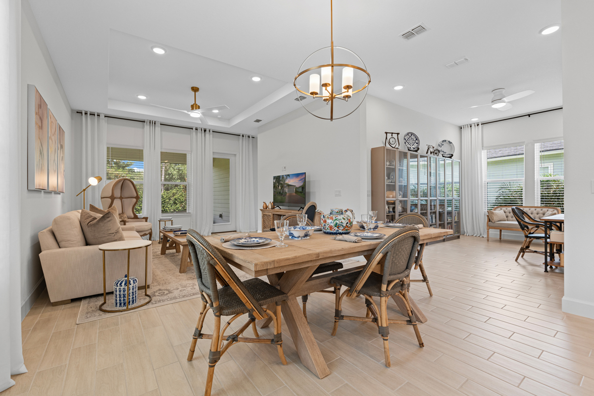 This Cumberland plan by Dream Finders has been thoughtfully curated with the help of an interior design firm, and it shows in every detail. From the brushed brass fixtures to the full-length custom drapery, this home is the perfect blend of luxury and comfort, with beauty at every turn. It lives large, offering an open concept layout with 10′ ceilings and 8′ doors throughout, and is a breeze to maintain.