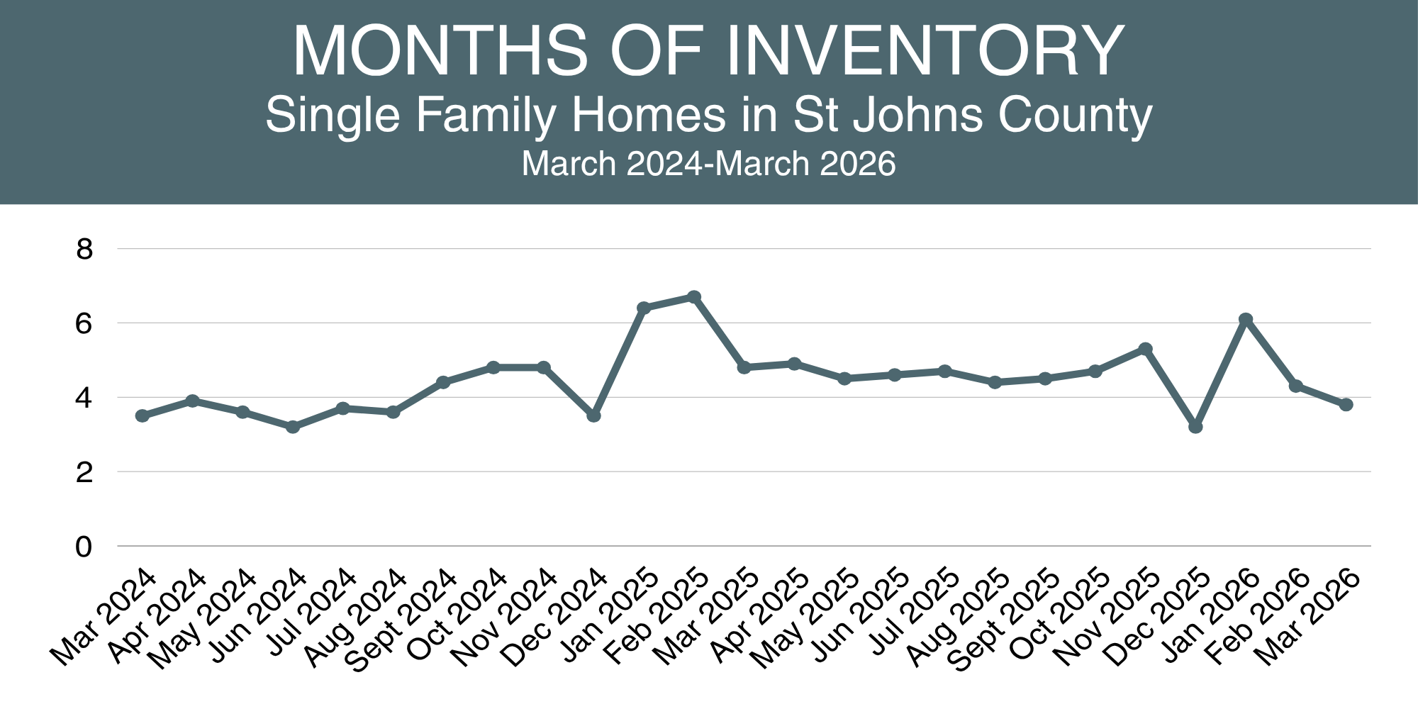 This month in St. Johns County, we’re seeing a mild seller’s market with active buyers and stable home values as we move through the spring selling season.